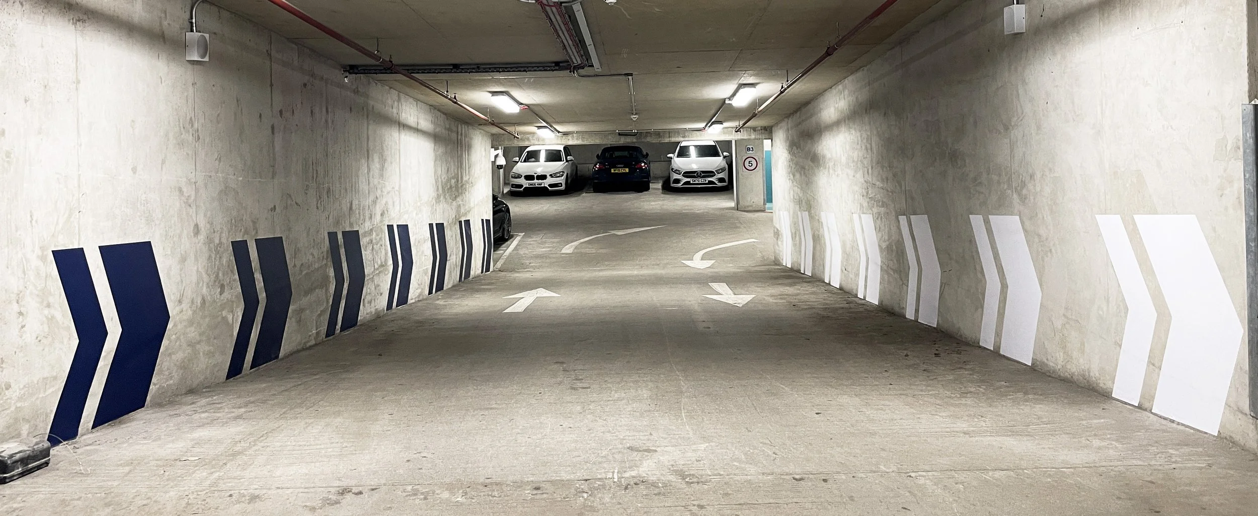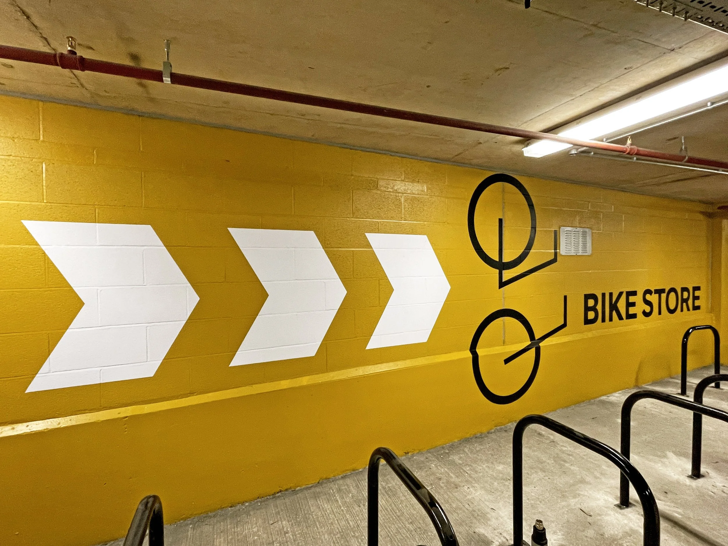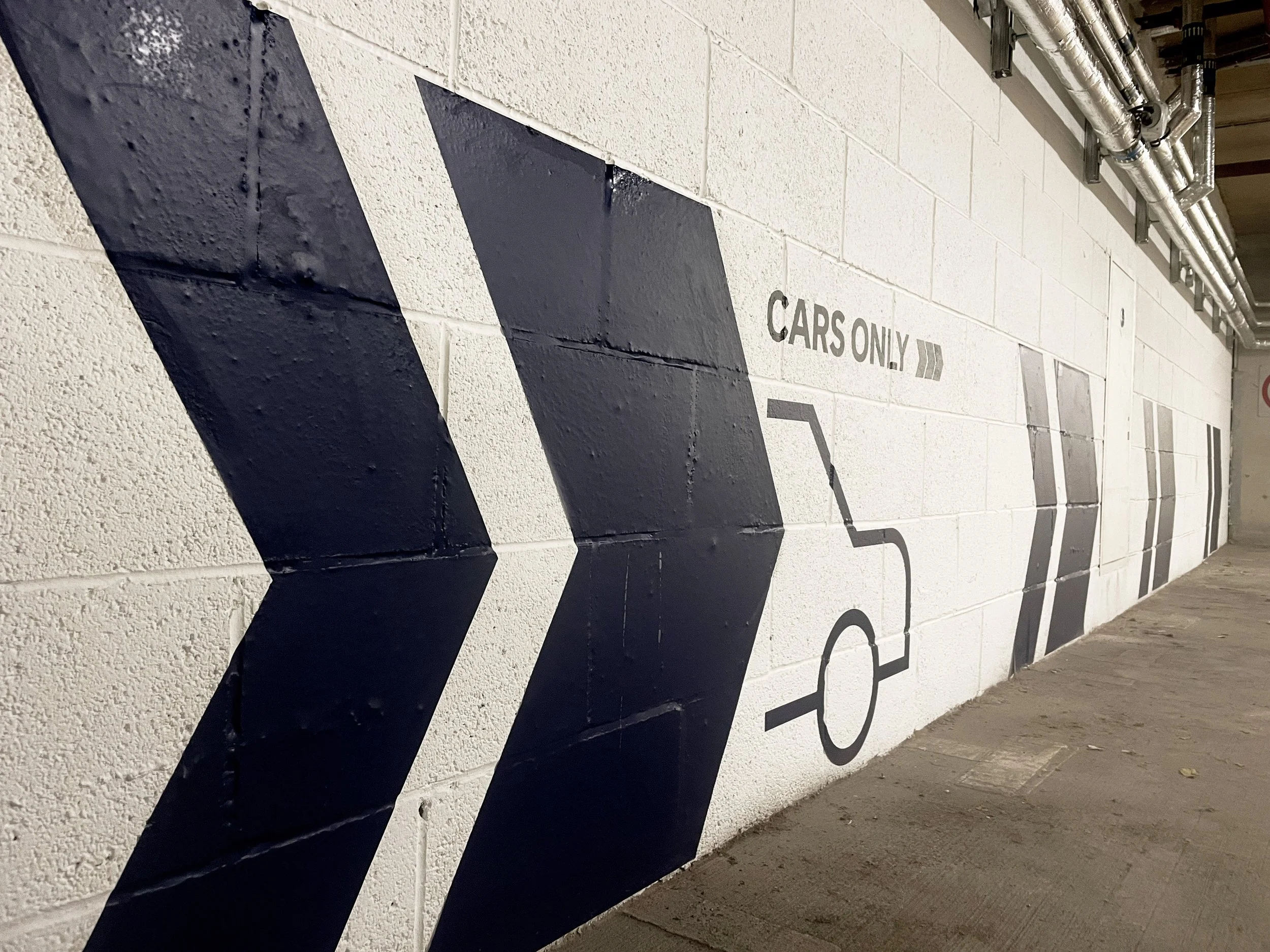 We specialise in providing clear, readable signage in all sorts of scenarios, including this brilliant new project with NatWest designed to direct foot, car and bike traffic across three floors of basement-level parking. We produced bright, distinctive, profile-cut graphics printed on high-tack, conformable media, using heat to apply them to concrete walls, pillars and floors.